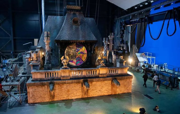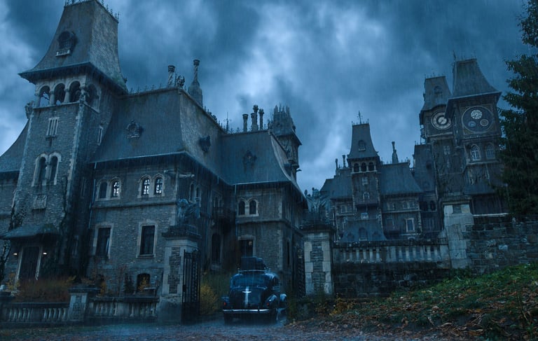 To enhance the atmosphere, several scenes at Cantacuzino Castle were supplemented with CGI, blending physical and digital elements to fully realize the eerie grandeur of Nevermore. The fictional town of Jericho and additional interior sets were constructed at Buftea Studios, one of Romania’s leading production facilities.