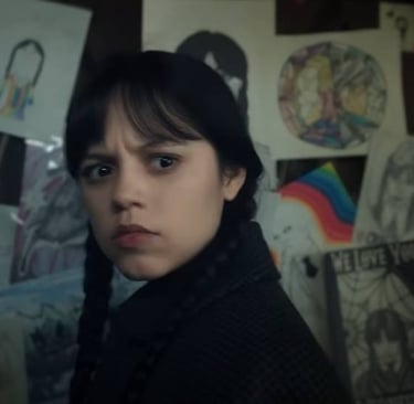 The door to Ophelia Hall is now a shrine to Wednesday. Posters, drawings, messages—a far cry from the solitude she once had. Her reaction? Cold and calculating: "We need to set some traps."